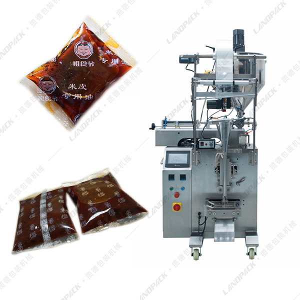 方便麵料包包裝機適用於粘稠醬體、大塊肉醬等物品的包裝及含有各種固體物質如辣椒、肉塊、花生、佐料等物體的醬類和油、料分離的火鍋底料等,適用於方便麵調料、醬油醋包、小袋番茄醬包、牛油火鍋底料、紅油火鍋底料、蜂蜜果汁、辣醬、果醬等。