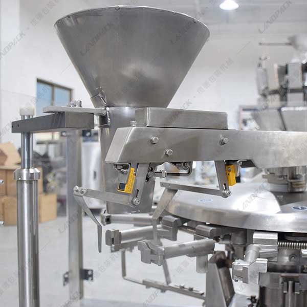 工作流程:上袋→打印生產日期→開袋→充填1→充填2→空位→熱封→整形及輸出